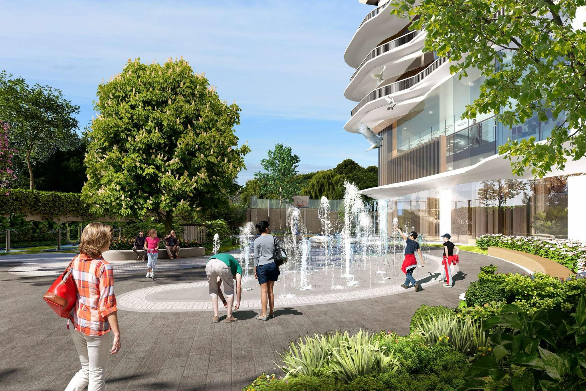 - Không gian sống đa dạng: Khu vui chơi trẻ em, trung tâm thương mại, nhà hàng, spa, gym, cây xanh, và khu vui chơi giải trí.