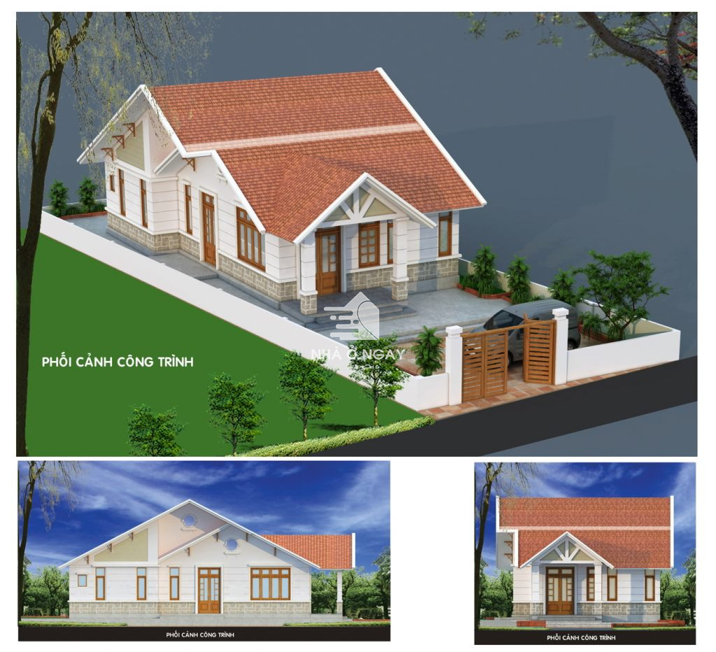 Còn về thẩm mỹ của ngôi nhà, có thể xem bản vẽ mặt đứng và phối cảnh dưới đây.