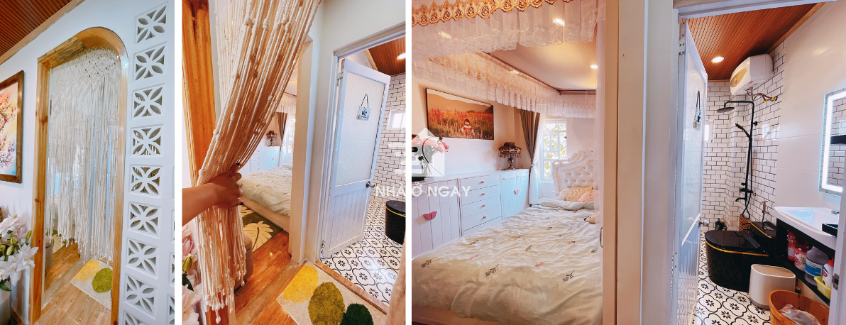 Bỏ vách gỗ ngăn phòng ăn với phòng ngủ và phòng vệ sinh và thay bằng mành thắt, làm không gian bớt chật chội.