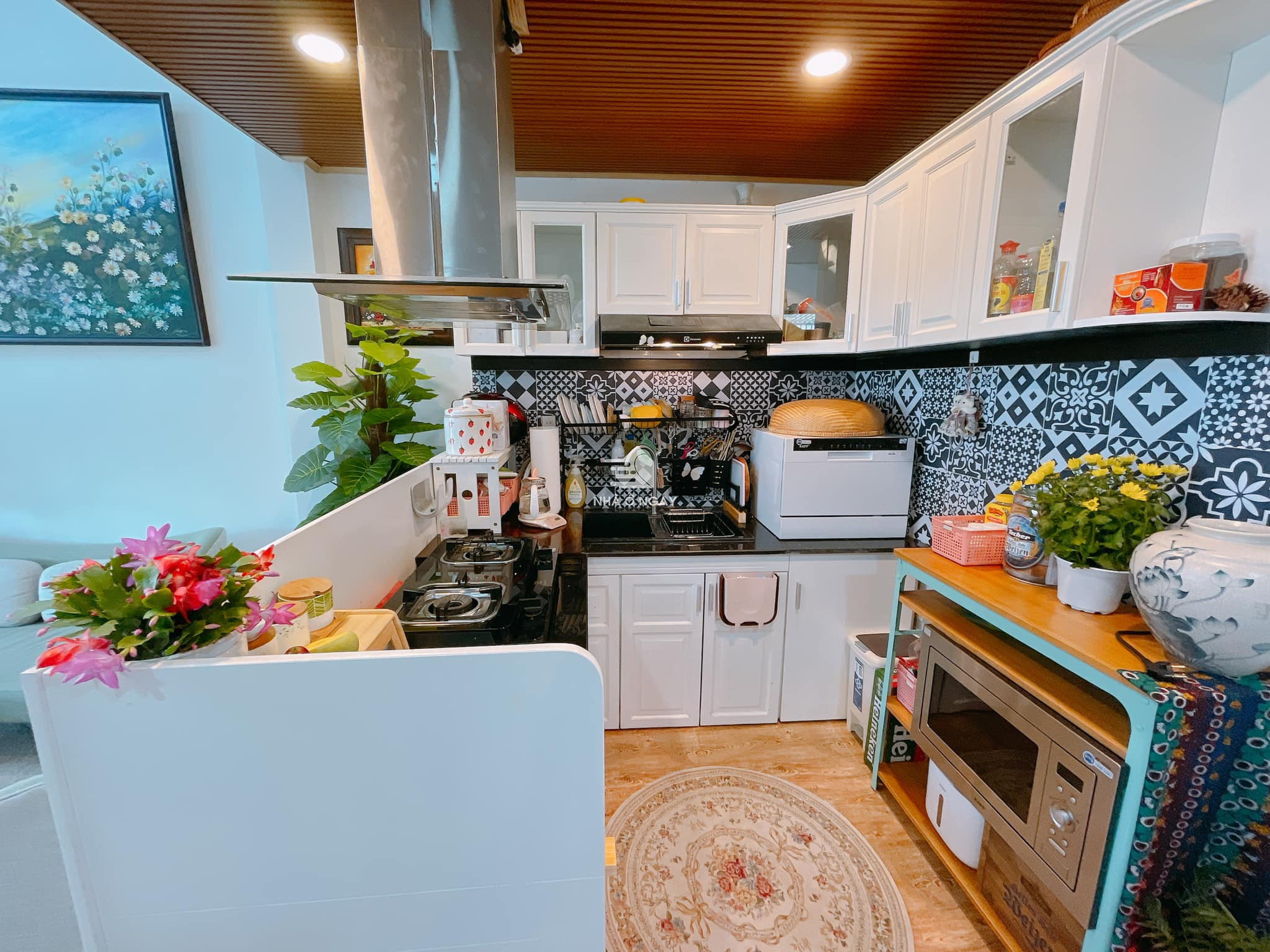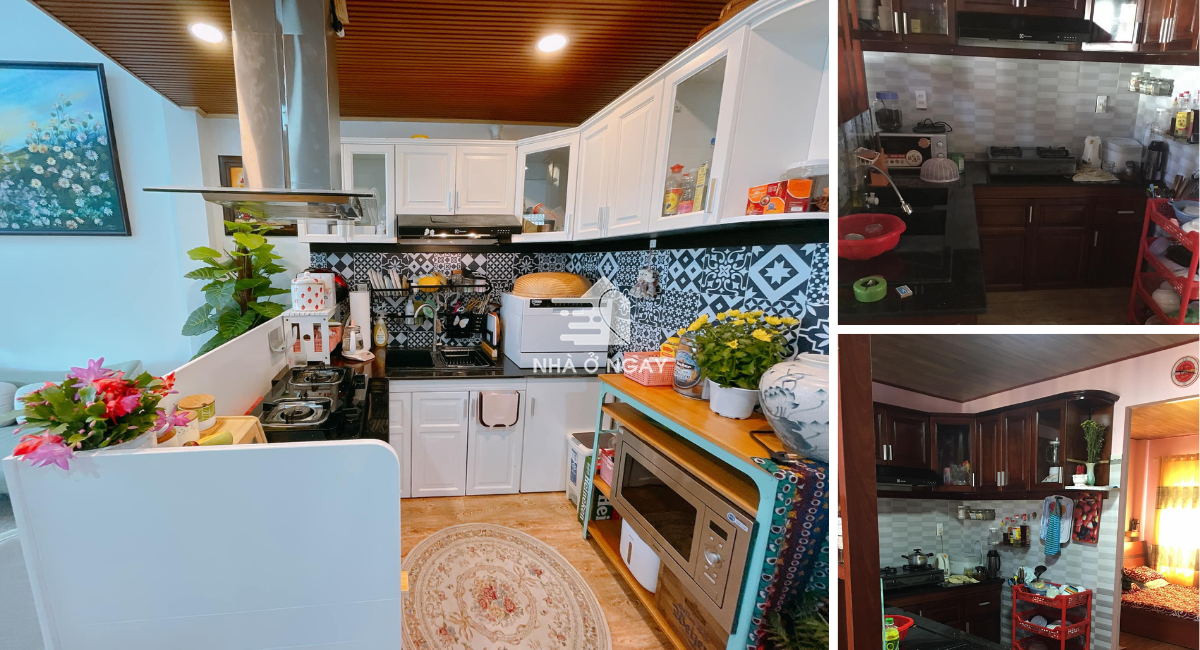 Bếp tẩy gỗ, sơn trắng lại.