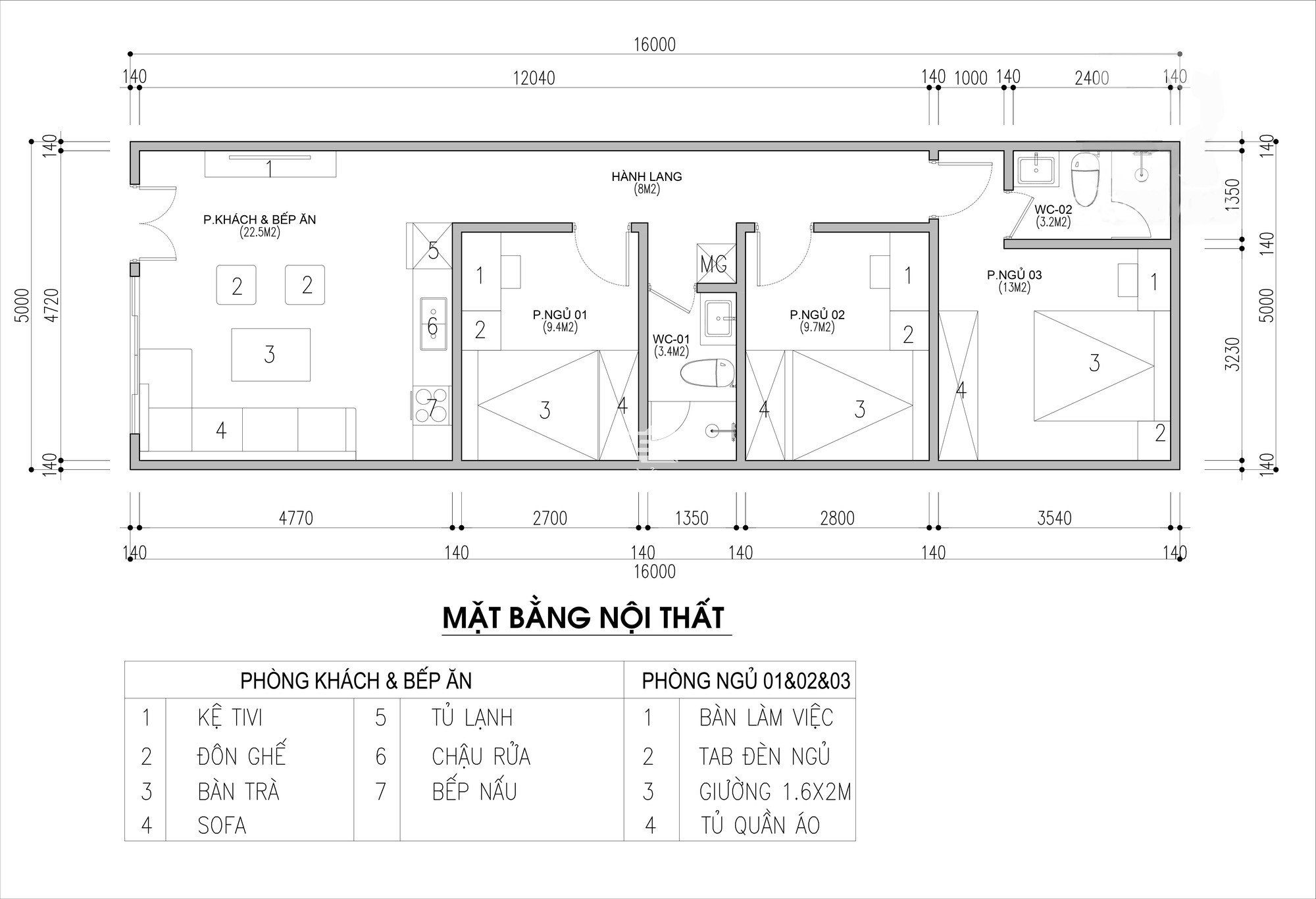 Mặt bằng bố trí nội thất.