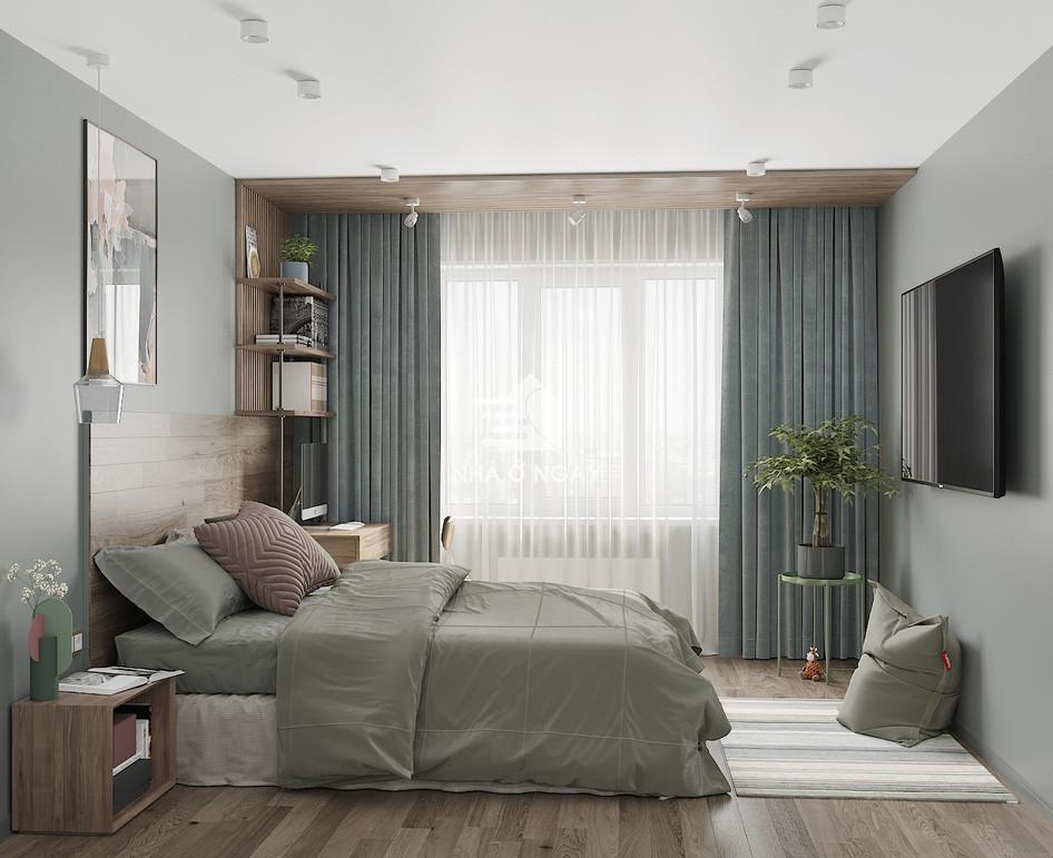 Các phòng ngủ tuy với diện tích khiêm tốn chúng tôi cũng đã thiết kế đầy đủ những đồ nội thất cơ bản như: bàn làm việc, giường ngủ, tủ quần áo, tab đèn ngủ. Các đồ nội nội thất đều được bố trí hợp lý với không gian chức năng.